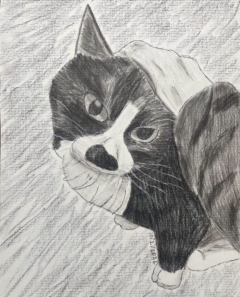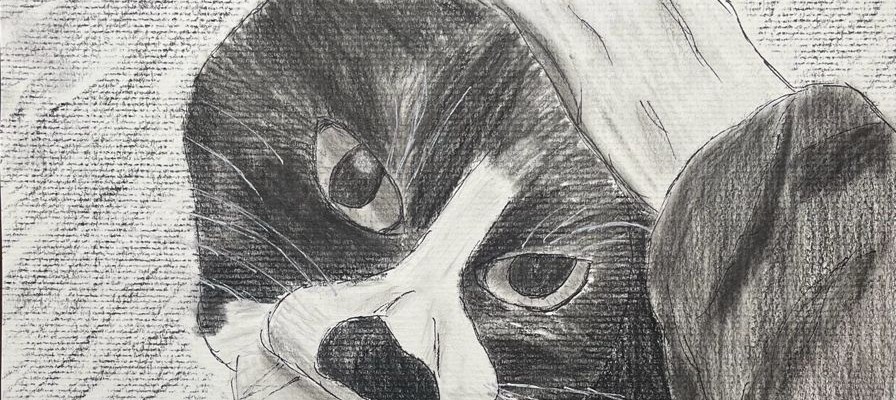 This is a pen and charcoal drawing of my cat Hobbes. I drew it shortly after she passed away in 2022.