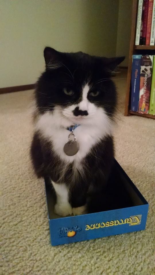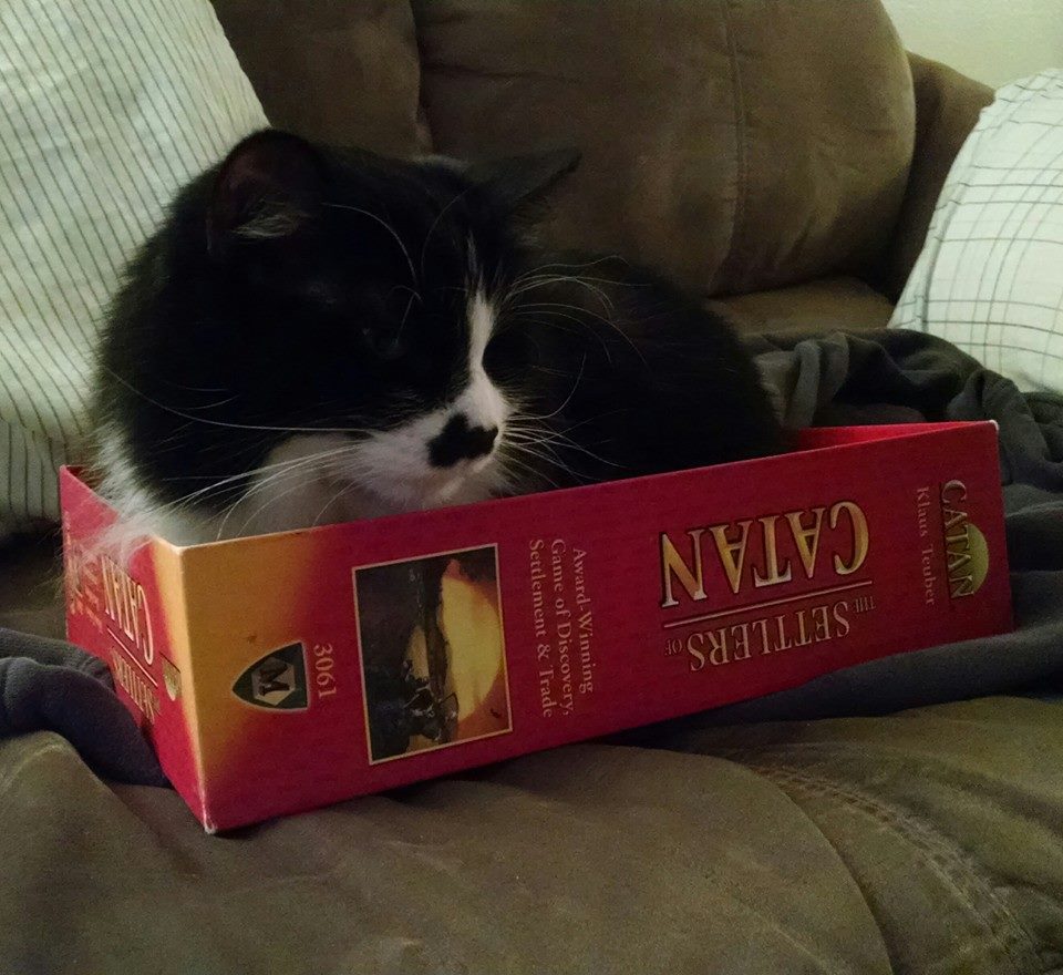Me and my brother used to play a lot of board games, and Hobbes would always commandeer the boxes while we were playing. I would like to draw a picture of one of these some day. I think I prefer the Catan one better. Either way, I need to work on my color pencil skills before I can do it justice. I have found that pen and colored pencils produce a similar effect to what I previously described with pen and charcoal.